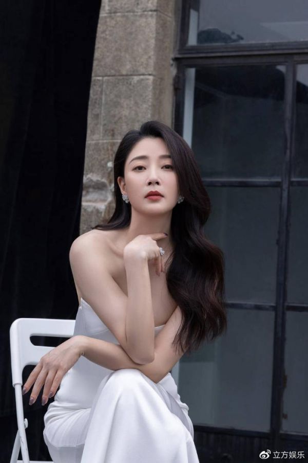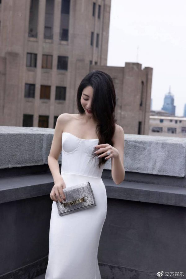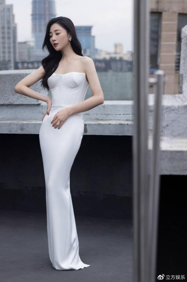 近日,殷桃工作室晒出了一组殷桃身穿修身白裙的写真照。