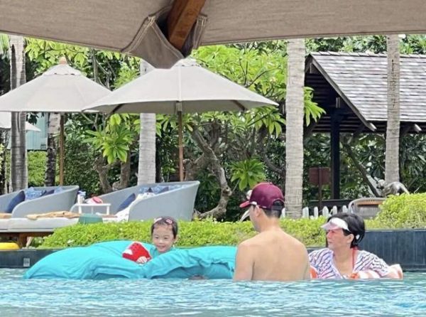 用完餐之后,谢天华和妻子还带着女儿去泳池玩乐,期间他们一直小心翼翼的保护着女儿,生怕她出什么意外。