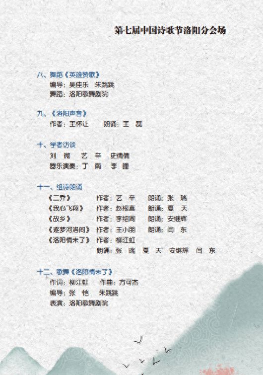 据悉,为让更多喜爱诗歌的市民群众欣赏到精彩演出,本次“诗韵洛阳”主题诗会将采取线上线下结合的形式进行,于9月22日晚7点30分通过河南日报、洛阳旅游全媒体矩阵、老贾播报、洛阳网等多家线上媒体平台同步播出,为群众奉上一场精彩的诗歌盛宴。
