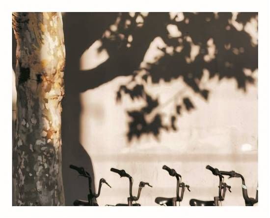十月已近下旬,走在上海的陕西北路上,温度在调和着光线。路对面墙上,梧桐树影雕刻着时间,小黄车的车把梦想着飞翔。
