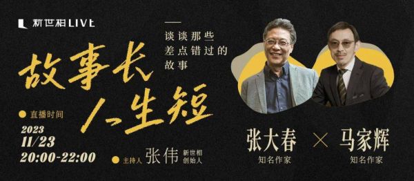 我也很想听你的家族史。点击这里 ,把你的故事,你父辈的故事分享给我,如果你有什么想问张大春、马家辉的问题,也可以写下来。你的问题将有机会在直播中听两位作家的分享与解答。