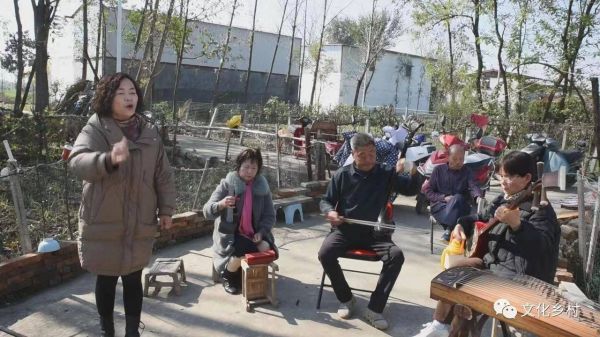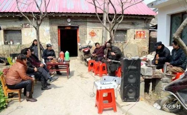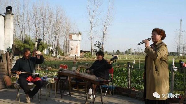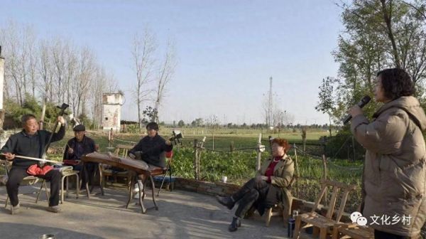村庄,农户,庭院,几个人围在一起,弹三弦、抓古筝、唱大调曲、说三弦书,三五村民围坐一边,静静地看、听。白云悠悠,木叶飒飒。淡远安闲的风景,浸心润肺的吟唱,让人忘了忧愁烦恼……