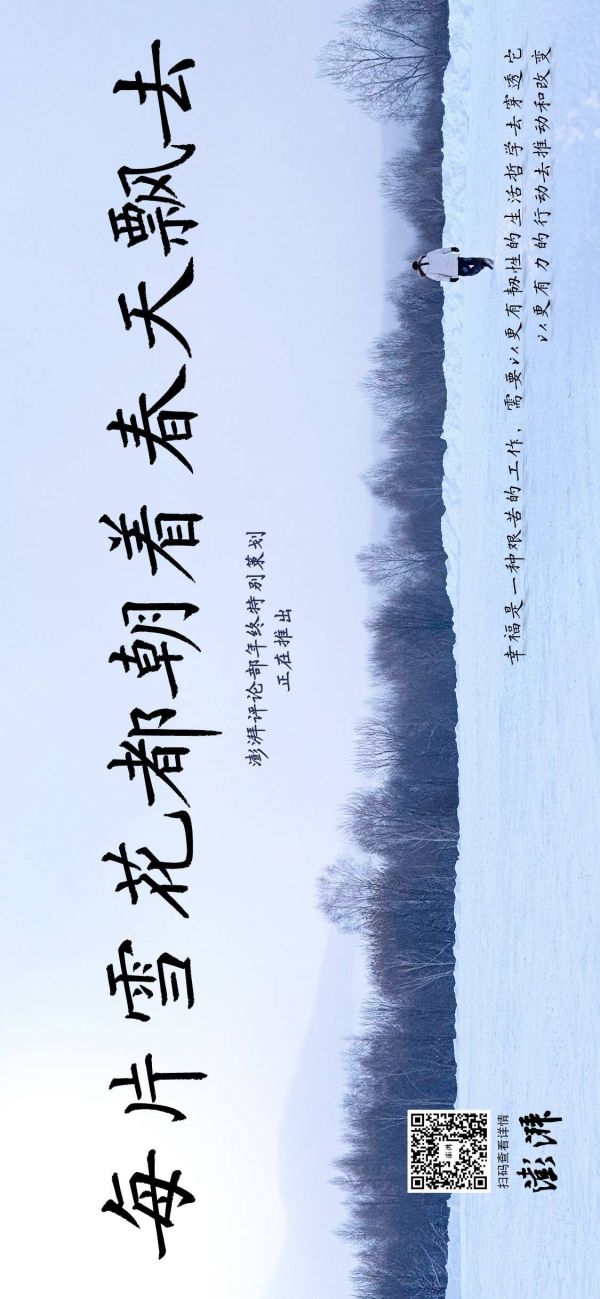 无论是在宏大的时代,还是在人生的紧要关头,“幸福都是一种艰苦的工作,需要我们以更有韧性的生活哲学去穿透它,以更有力的行动去推动和改变。”回首即将过去的一年,你又以何种姿态和行动予以应对?澎湃评论部年终特别策划《每片雪花都朝着春天飘去》,记录和书写你我的2023年,本文为专题开篇。