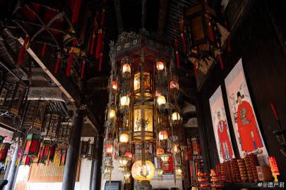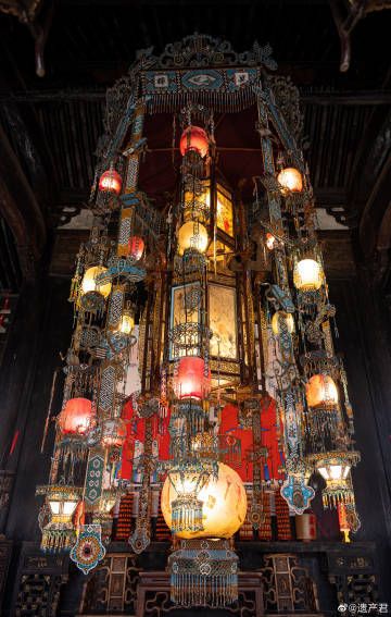 东阳卢宅肃雍堂的百年大珠灯,40多万颗玻璃巧做成4米高的大灯。曾经流行于浙江金华一带祠堂里的各式玻璃制作的大珠灯,很多都没有躲过破四旧的破坏,这件成为目前国内幸存下来的极少数的实例,非常珍贵。