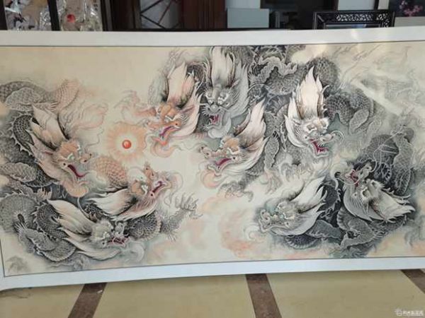 张先松对“龙”这个中华民族的传统象征情有独钟,几十年来,他的笔下和针下,龙和凤几乎成为他创作的主体,其中有《汉绣九龙屏》《龙腾盛世》《九天揽月》《九龙奋进》等一批精美作品。