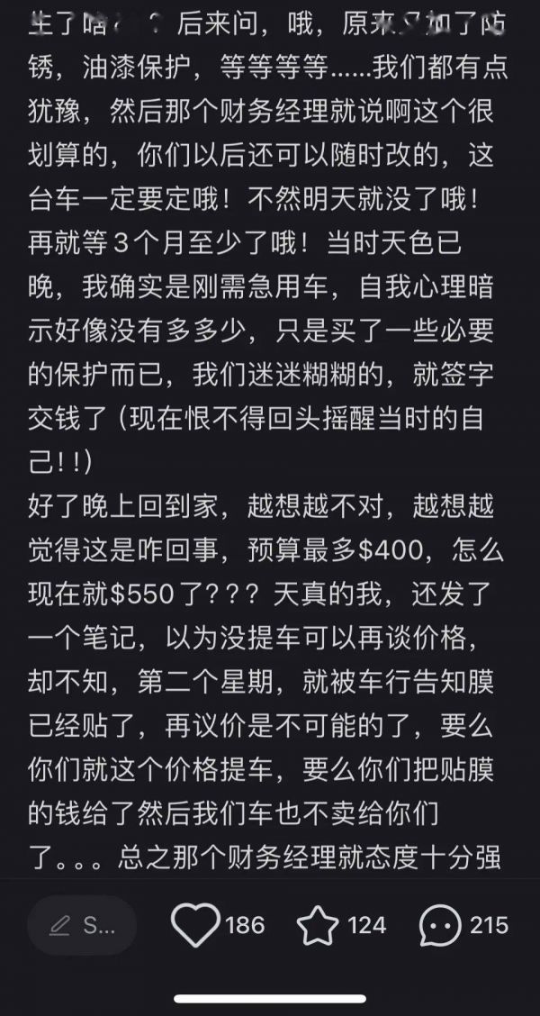 签完合同我又犯了难。财务经理建议添加一个所谓的防锈的项目,我当时没有多想,稀里糊涂地就同意“签字画押”了。事后回思,虽然多出的花费分摊到每月的车贷上看似不多,但实际付出的总价不菲。进一步研究后,我才知道这玩意纯粹是薅羊毛的无用摆设(如图所示,对于此事,中外论坛的评价出奇的一致)。