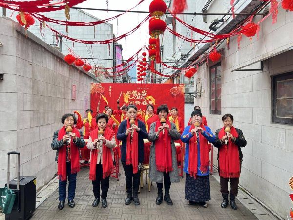 在表演区周边,还有手工制作灯笼、糖画等非遗展示。同时,社区的书法爱好者现场挥毫泼墨,为居民们免费创作福字。辖区医疗机构也纷纷为居民们提供口腔检查等免费的医疗服务。