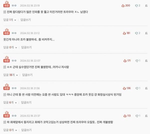 2024 年 2 月 18 日,一名观众在2024年 Hanteo 音乐奖上“大便”的报道在韩国社交媒体上疯传。“拉便的人”成为X上的热门推文 ,据了解,有人脱掉了裤子,在艺术家等候座位附近的 Mosh区域进行了大便,这一点得到了很多观众以及在场的安保的证实。