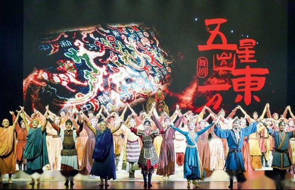 第六届中国新疆国际民族舞蹈节展演剧目——由和田地区新玉歌舞团演出的舞剧《五星出东方》在乌鲁木齐京剧院上演(2023年7月31日摄)。天山网-新疆日报记者周鹏摄