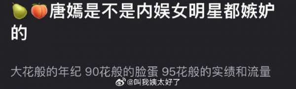 有网友说唐嫣拥有大花般的年纪,90花般的脸蛋,95花般的实绩和流量,这是不是内娱女明星所嫉妒的?