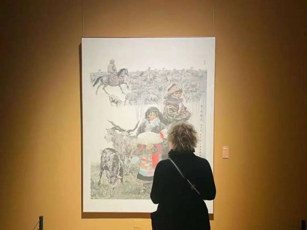 在繁忙的中国行的尾声,伊娃娜在中国美术馆看画。(拍摄:魔法象编辑冯彦中)