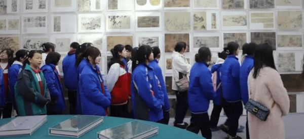 学生团体观看盛世修典——“中国历代绘画大系”准格尔旗特展(准格尔旗融媒体中心供图)