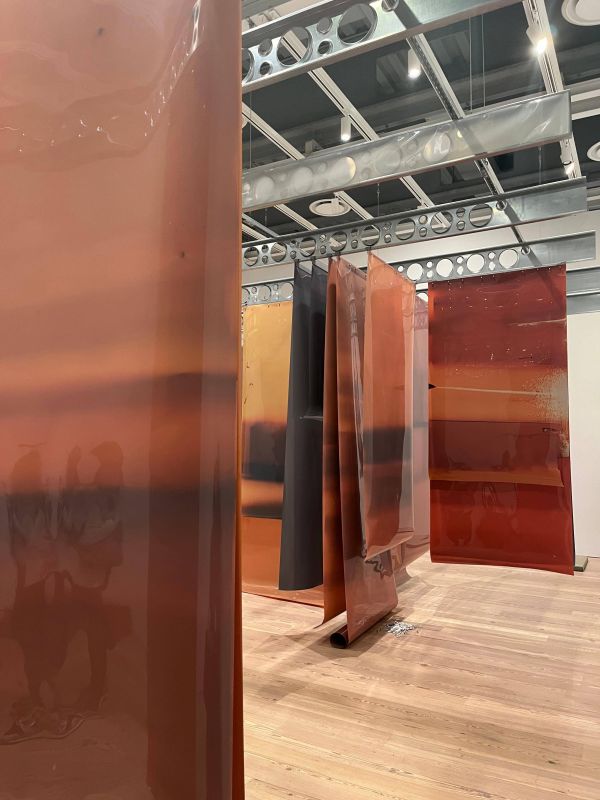 两件需要由时间来完成的作品倒是给我留下了一些印象:加拿大裔艺术家Lotus L. Kang的《在瀑布中》(In Cascades)于一间展厅中悬挂了大幅的摄影胶片,这些胶片仍然在感光过程中,随着时间的推移将产生不同的图像,堪称“以时间为画笔”的马克·罗斯科抽象绘画作品。艺术家想要表达的是一种永远处于变动之中的状态,胶片显影成像对人生的隐喻也恰到好处。
