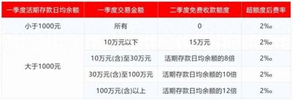 具体来看,一季度活期存款日均余额、交易金额越高的商户,二季度可享受更高的免费收款额度,超额度部分按照2‰的费率收取手续费。