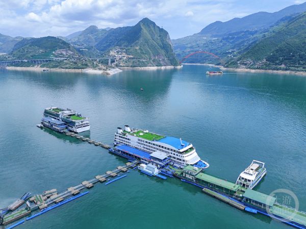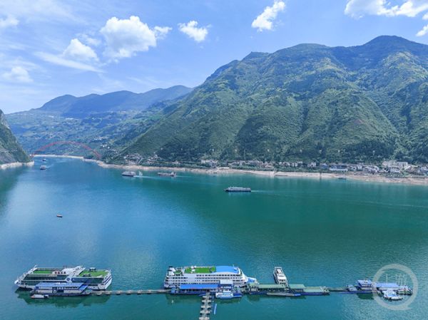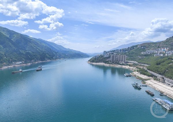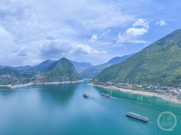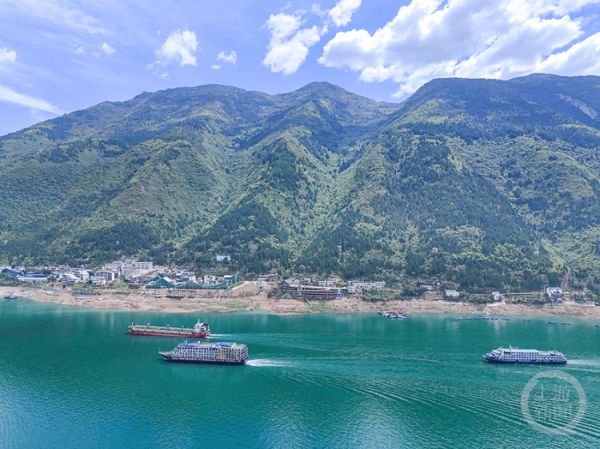 4月8日,春日的巫山,蓝天白云、青山碧水、船只穿梭、美景如画。