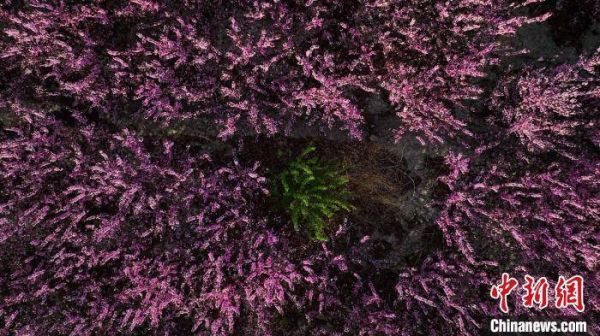 从空中俯瞰,花田展现出浓浓春意。胡国凯 摄