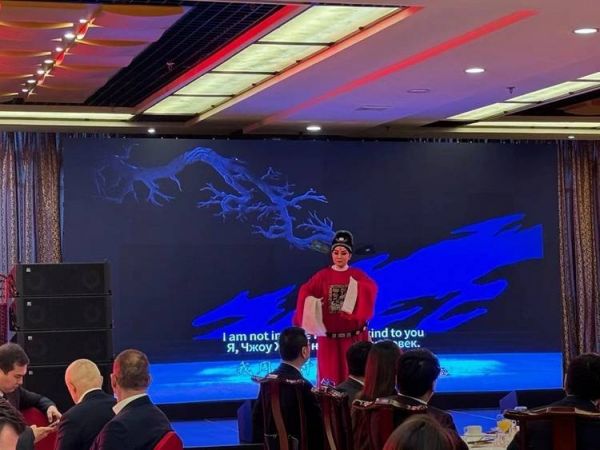 虚拟世界的火辣,延续到现实生活里更加活色生香。这厢有小提琴博主在埃菲尔铁塔下演奏《花脸》火爆网络,那厢有三意社演员杨升娟携侯红琴爱徒周蓓西出阳关,中国绅士与中国淑女红袍霞帔,一生一旦不久前随西安代表团在古丝路驿站哈萨克斯坦推介西安秦腔,献演了秦腔舞台延续百年的经典剧目《周仁回府》《花亭相会》《五典坡》的片段。虽语言不通、文化背景相异,但当地宾客先被秦腔明艳光鉴的服饰装扮吸引,“中国西北歌剧”的声、台、形、表更是惊才绝艳,一唱、一和、一道白,在哈萨克斯坦瞬间圈粉一片,迷倒无数观众。原计划一人唱两段,结果唱了十几段还是无法下台,两位演员不断返场加唱,观众们的叫好声、喝彩声一浪高过一浪。