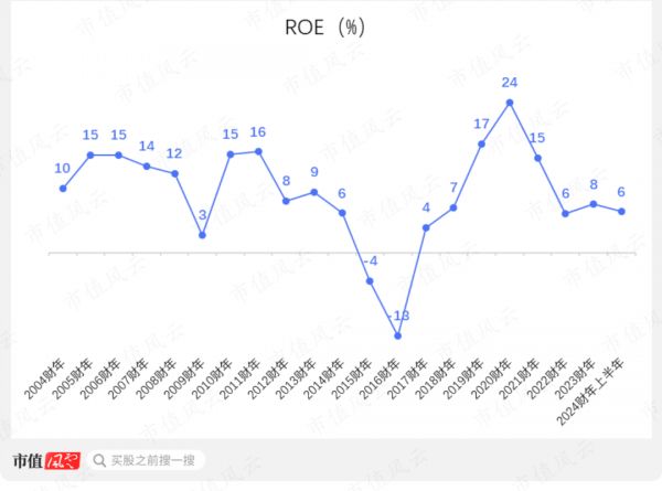 相应地,公司的ROE表现,也因为公司的盈利能力变化呈现类似波动趋势。2023财年,公司的ROE为7.6%。2024财年上半年,公司的ROE为6.4%。