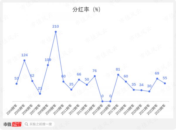 对于坚持持有迪生创建股票的投资者来说,为数不多的慰藉是公司在大部分时候依然在坚持分红。除了2015-16财年因公司出现净亏损而暂停了分红以外,整体来说,公司的过去20年的分红率保持在61.5%,2023财年分红率为54.6%。