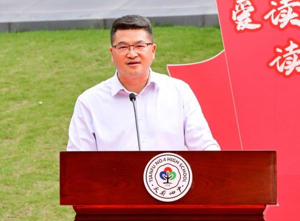 天府四中书香校园的打造,离不开天府新区领导的殷切关怀,离不开社会各界,对学校教育事业的爱心和关心。四川天府新区教育卫健工委副书记,社区治理和社事局党组书记、局长杨远东参加了天府四中读书节启动仪式,杨远东局长表示天府四中教育集团举办的主题读书节活动是一个很好的契机,是一个很好的充电蓄能的平台希望老师和同学们好读书、读好书,以书为伴、以文为友,常翻阅,善反思。