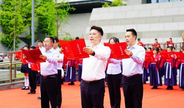 张显国校长领诵,师生齐诵《天府四中赋》。