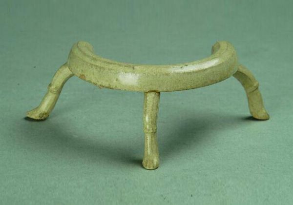 河南博物院馆藏的这件白釉凭几,属隋代时期,瓷质,高6厘米,1959年5月河南省安阳市豫北纱厂出土,1962年移交河南博物院收藏。几身半圆形呈弧条状,弧形兽腿,蹄足。通体白釉,釉色略泛青。这种弧形凭几在晋、南北朝时较为流行,墓葬出土较多,有木质地、陶瓷质地等,一般都是几身扁圆呈弧条形,下接三条兽形腿支撑,足部雕刻出兽足。