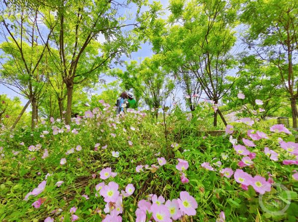 粉嫩的花朵汇成浪漫花海,仿佛进入了童话世界。
