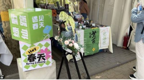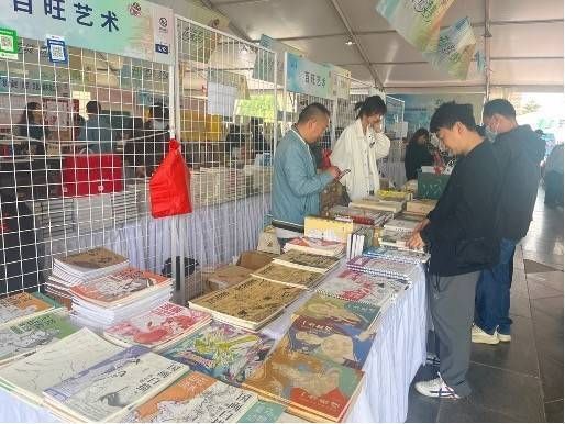 北京书市设立的实体书店街区引入了众多特色实体书店,街区中的书店搭建各有特色,有的摆满鲜花,有的挂着布幔,让书市变得更加文艺活泼。