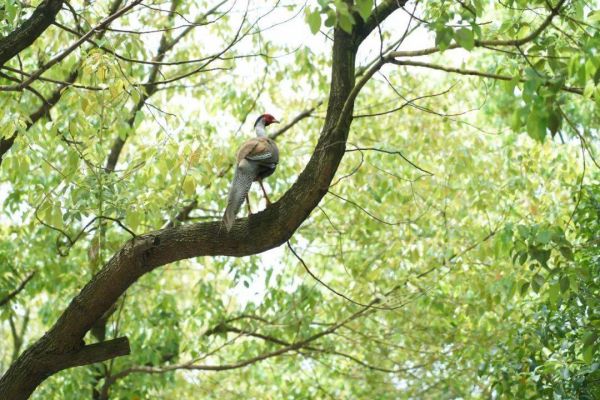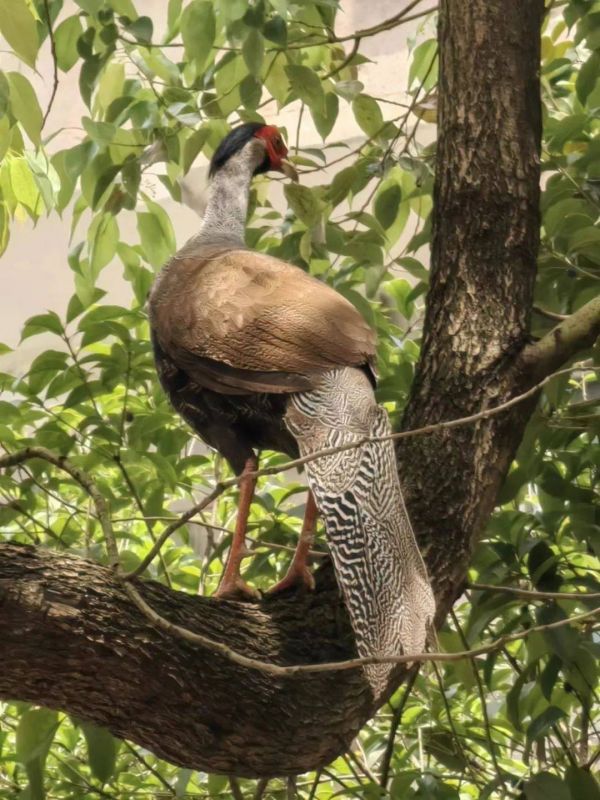 国家二级重点保护野生动物。雌雄异色,雄鸟上体白色而密布以黑纹,头上具长而厚密、状如发丝的蓝黑色羽冠披于头后;脸裸露,赤红色;尾长、白色,两翅亦为白色。雌鸟通体橄榄褐色,羽冠近黑色。栖息于森林茂密,林下植物稀疏的常绿阔叶林和沟谷雨林。