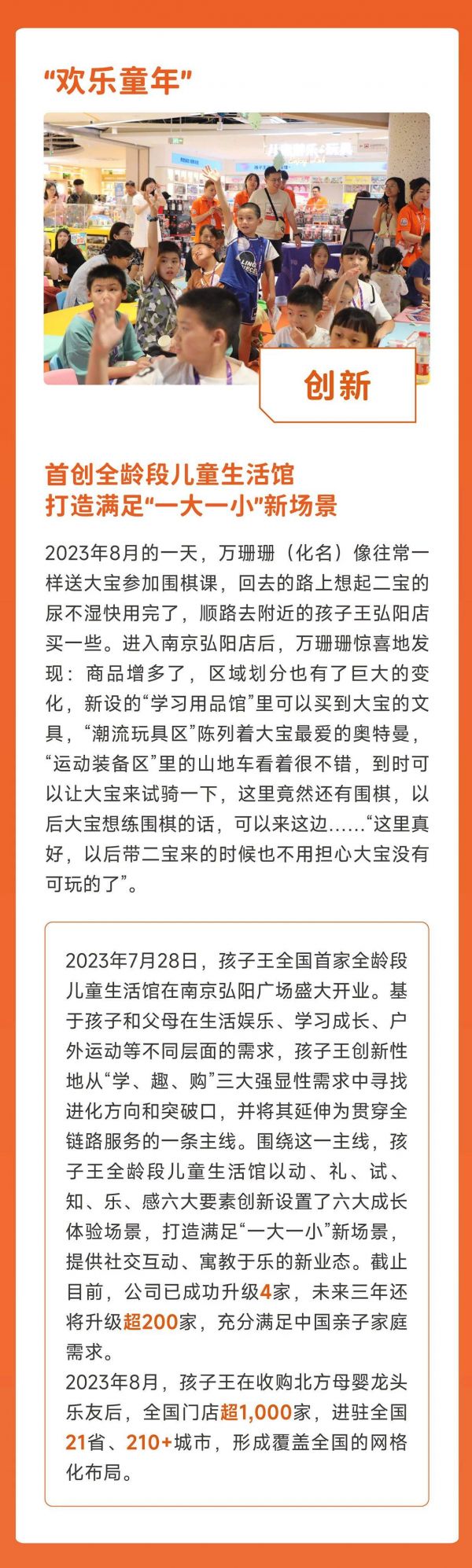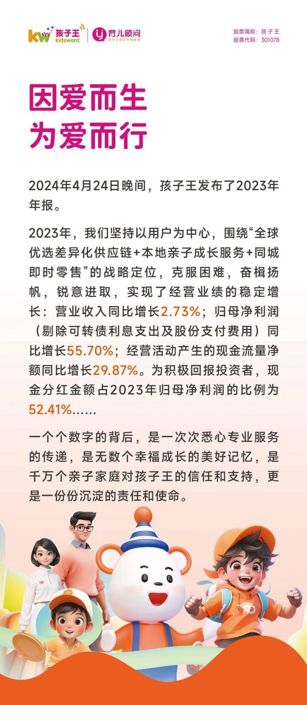 原标题:孩子王2023年年度报告: 数字背后,那些爱与欢乐的故事