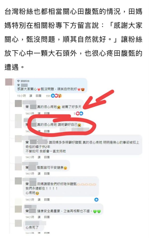 这番话直接让台湾省粉丝彻底心疼,纷纷跑到下面留言,让田馥甄妈妈好好照顾她,她们会一直支持她,又不缺钱花,以后可以在台北开演唱会。