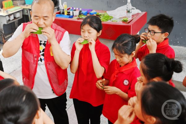 棕编传承人冉波在为同学们讲解棕编艺术。