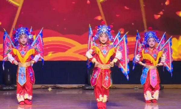 童声优美婉转,曲韵声声悠扬。活动中,第一小学戏曲社团的小演员们身着华丽的戏服,每一个动作、每一个眼神都充满了艺术韵味。黄梅戏《女驸马》、豫剧《花木兰》、京剧《卖水》等戏曲片段轮番上演,赢得现场观众的阵阵掌声。
