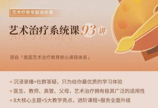 应学员们的期待,简单心理Uni联合WABC艺途学院,以美国艺术治疗教育体系的核心课程框架为基础,融入WABC艺途学院创造性艺术领域多年的国内实践经验,从课程架构、课程内容、学习配套进行全面升级,开发了《艺术治疗系统课93讲》。