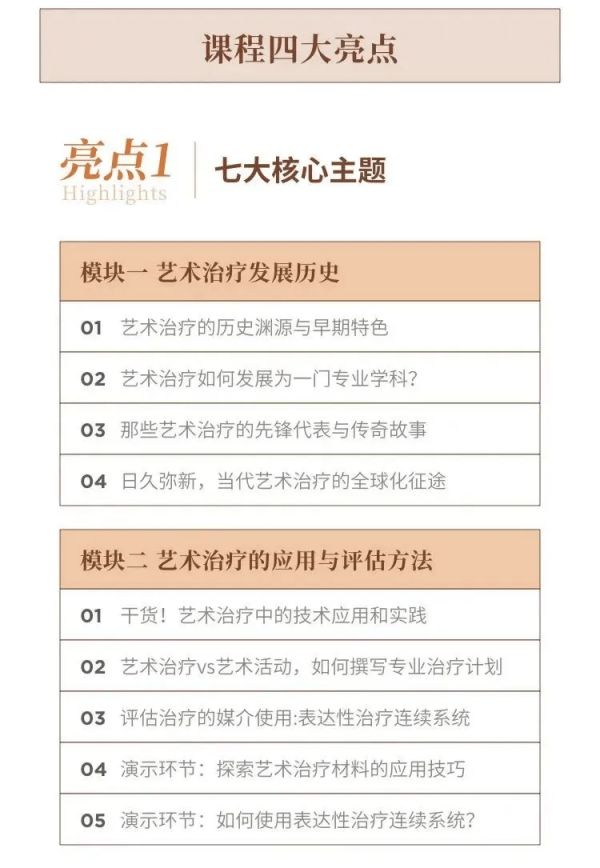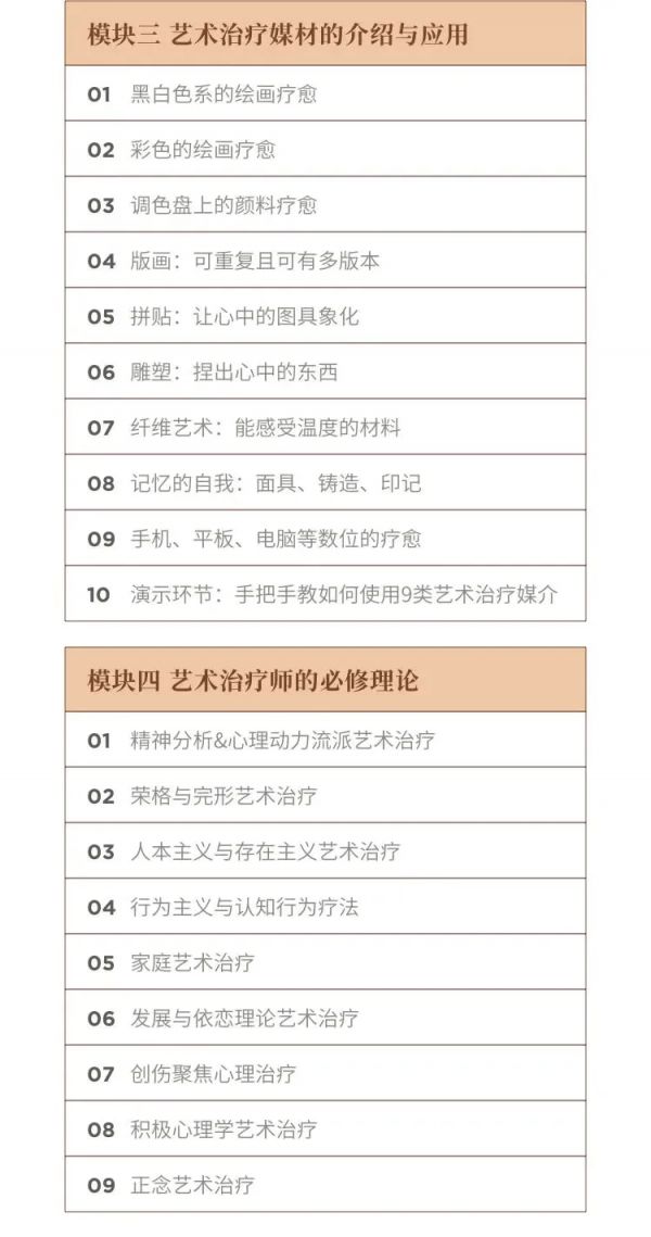 从艺术治疗的伦理到理论,再到媒材的认识和如何应用实践,实现学以致用。