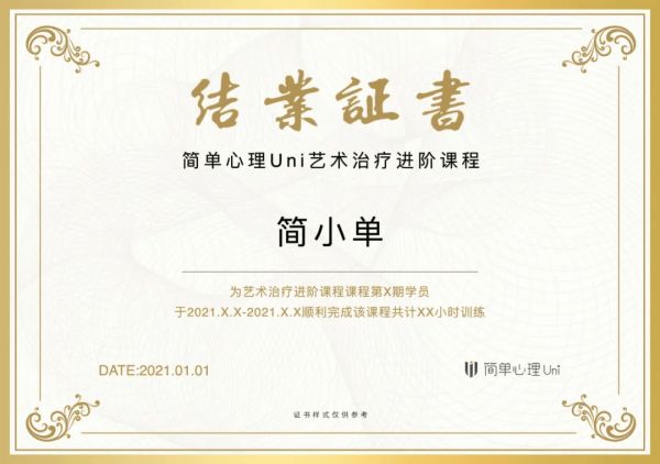 达到结业标准的同学,将获得简单心理Uni x WABC共同认证记录艺术治疗专业学时数的学习证书。