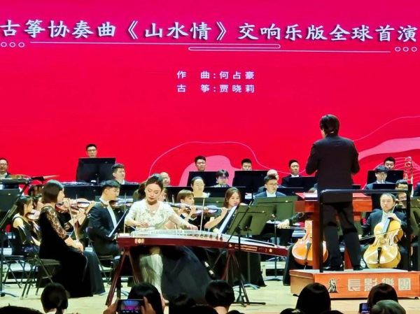 当晚,由何占豪作曲、贾晓莉独奏的古筝协奏曲《山水情》交响乐版举行了全球首演。在演出前,何占豪分享了古筝协奏曲《山水情》的创作背景,帮助观众更好地理解并融入作品。