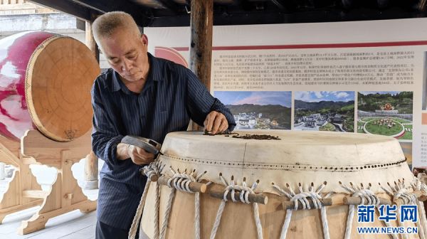 师傅正在制作彭鼓。新华网 刘丰 摄