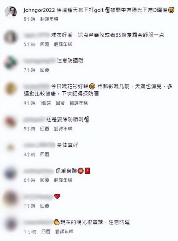 近年甚少露面的72岁方平,与姜大卫一行四人兴致勃勃去打高尔夫球,不过负责拿手机自拍的方平,脸上晒到红卜卜,又加上皱纹及色斑,看起来老了不少。姜大卫昨日发文:“在这种天气下打高尔夫,被间中有阳光下差点晒伤”,不少网民见到四人被晒到脸红,叮嘱要涂防晒及保重身体。