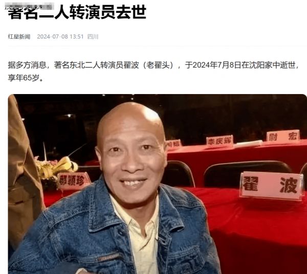 赵本山得意门生、著名小品演员、二人转演员翟波不幸病逝,享年65岁。
