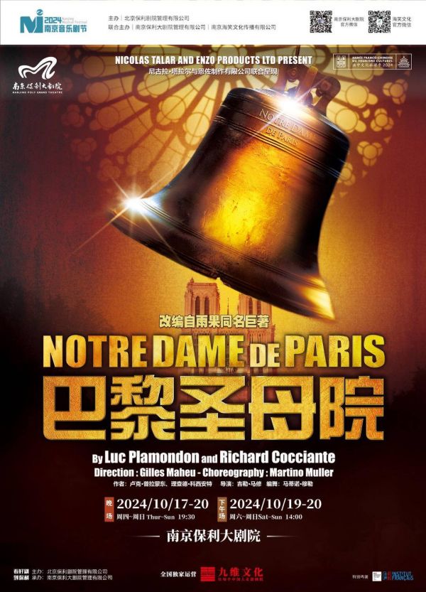中法建交60周年,法语音乐剧“三宝”《唐璜》《摇滚莫扎特》《巴黎圣母院》首度齐聚南京。《唐璜》《摇滚莫扎特》场场售罄,掀起观剧热潮。10月17-20日,法语音乐剧里程碑巨制《巴黎圣母院》将连演6场,带领观众感受法语音乐剧传奇之作的不朽魅力。