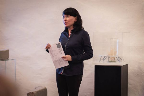 上海城市景观设计师、艺术家钟律介绍“大地之声”公共艺术作品。斯德哥尔摩中国文化中心供图