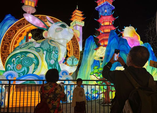 北京园博园,自贡彩灯亮相京城,200余组灯组同步点亮。