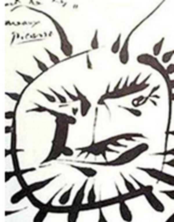 我们再看看毕加索的画吧,如果大家看第一眼的话会感觉这无法用言语表达的,这完全是副小孩子的涂鸦啊。其实早期人家的画也是十分逼真的,随着年纪的增长人家也在追求返璞归真的画风,所以后期的话很多看似小孩子的画画。其实这幅不起眼的话它具有很高的收藏价值的,据说画的是一个希腊神话人物。
