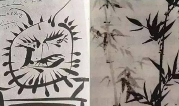 张大千毕加索互赠画作,看到毕加索的赠画,网友: 好像被“骗”了