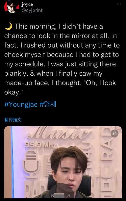 今天早上 我根本没有机会照镜子。匆忙出门,没有时间检查自己,因为我要去赶行程,然后就是呆呆地坐在那里,我看到我化过妆的脸:“哦 看起来还不错。”