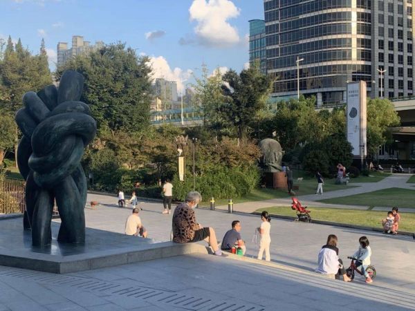 除此之外,美术馆的户外延伸也成为展陈亮点。海粟绿地近年来升级改造,无缝衔接刘海粟美术馆和海粟文化广场。绿地内大草坪、广场、坡地彼此交织,在这里,你可以看到遛狗的家长与他们的毛孩子共享欢乐时光,节假日里家长们带着孩子来公园探索自然,老人们在此歇脚享受宁静,年轻人则踩着滑板展示着活力,美术馆的访客们带着对艺术的向往进出其间。这一切共同编织出了一幅生动的公共空间画卷。