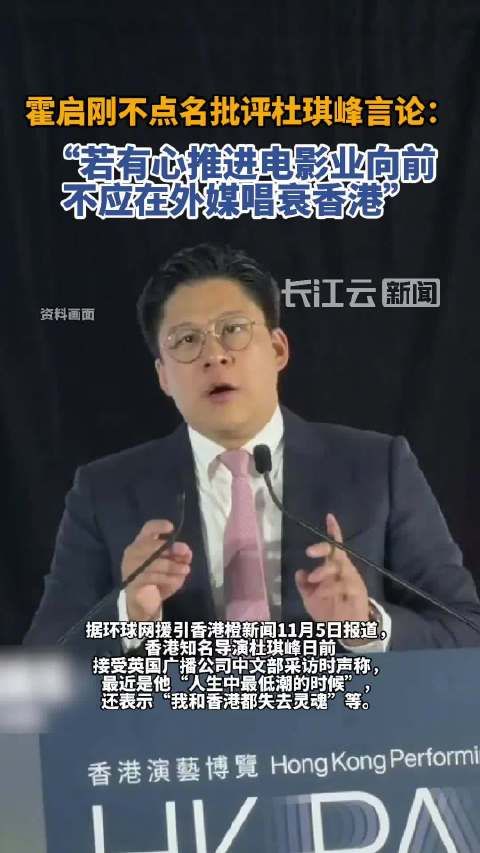 #港媒称霍启刚不点名批杜琪峰#【霍启刚不点名批杜琪峯:若有心推进电影业向前,不应在外媒唱衰香港】香港名导杜琪峯日前接受BBC访问,自言最近是他“人生中最低潮的时候”,并将之归咎于香港当前政治气候,称“我和香港都失去灵魂”云云。体育、演艺、文化及出版界立法会议员霍启刚在社交平台发文没有点名回应称,这无疑是非常自私的言论,既忽视了电影行业困局背后的多重因素,亦抹煞了电影人才的努力,又指如果有心推进电影业继续向前,更不应在外国媒体上唱衰香港。特别声明:以上文章内容仅代表作者本人观点,不代表新浪网观点或立场。如有关于作品内容、版权或其它问题请于作品发表后的30日内与新浪网联系。相关知识