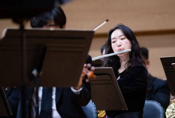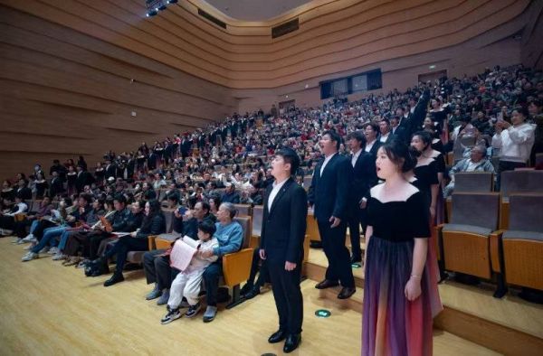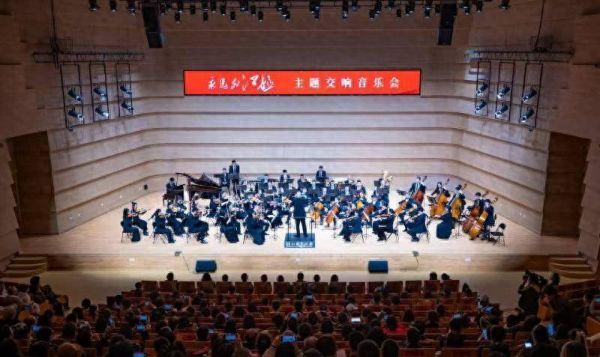 “百灵鸟从蓝天飞过,我爱你中国……”伴随着全场齐声高唱《我爱你,中国》,交响音乐会落下帷幕。