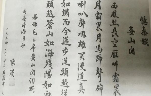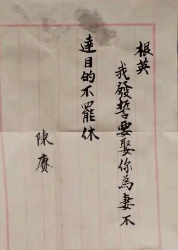这是当年陈赓大将追求自己发妻王根英时留的一张纸条。